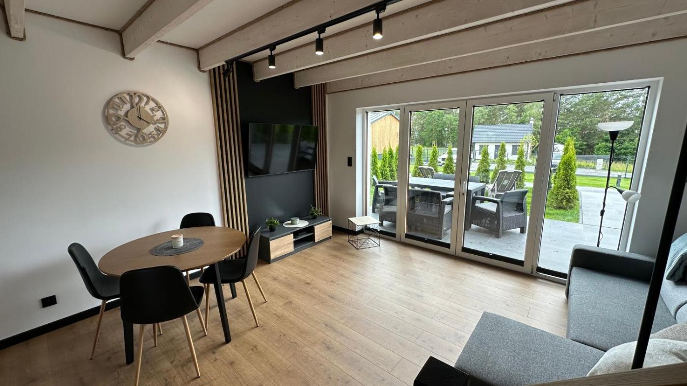Domek. Featuring a private entrance, this chalet is comprised of 1 living room, 2 separate bedrooms and 1 bathroom with a shower and a hairdryer. Guests will find a stovetop, a refrigerator, a dishwasher and kitchenware in the kitchen. The chalet also has a barbecue. Boasting a terrace with garden views, this chalet also offers soundproof walls and a flat-screen TV with satellite channels. The unit offers 7 beds. Domek - 8 osobowy. Powierzchnia pokoju ok.: 70 mkw. ;